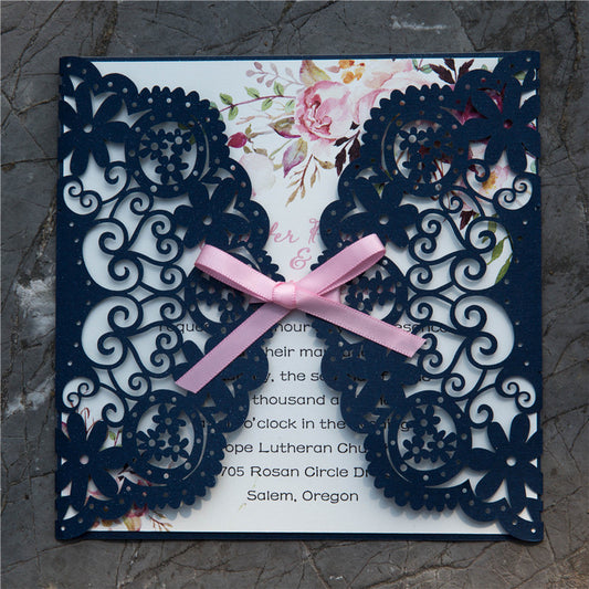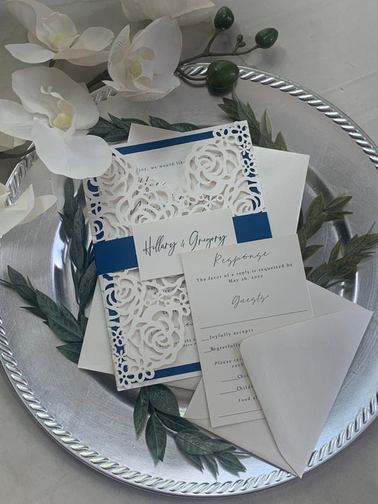 Royal Blue Wedding Invitation Set/Suite, Off white Wedding Invitation, Elegant Wedding Invitation, Ivory Wedding invitations, Laser Cut